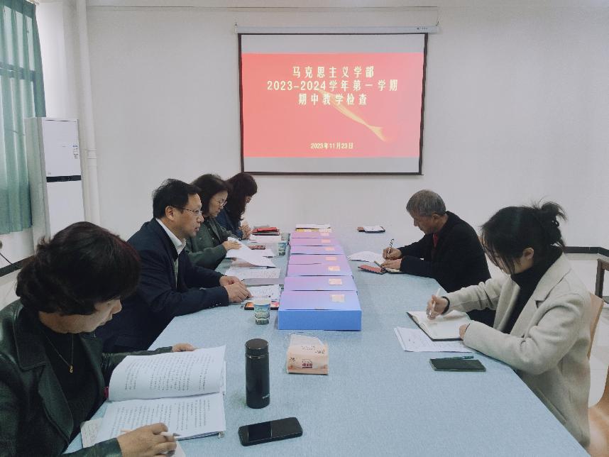 20231123日,马克思主义学部在3号实验楼208会议室召开了本学期期中座谈会。校党委书记杨邓红、教务部副部长胡敏、教学督导刘金梅、教务部屈婉婷莅临指导,马克思主义学部部分老师参加会议。
