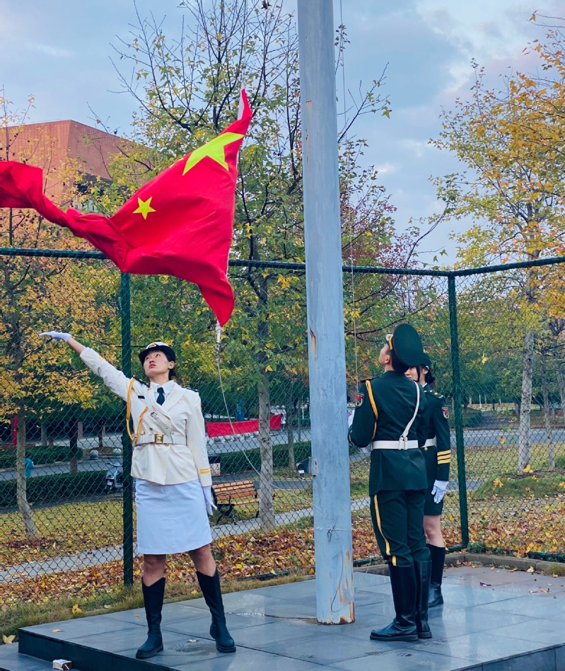 本次升旗仪式在各部门的组织和配合下圆满完成。忆往昔峥嵘岁月,擎起先辈们用鲜血染红的旗帜,望今日晴空朗朗,青年们的爱国之情漫溢于山海,青年学子励志做栋梁。