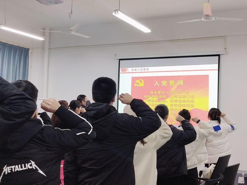 李进双、李潇晗同志宣读入党志愿。中国共产党来自人民、扎根人民、造福人民,以最广大人民根本利益为一切工作的根本出发点和落脚点。中国共产党从成立之初就担负起了为中国人民谋幸福、为中华民族谋复兴的历史使命。李进双同志表示:“未来我会恪守为人民服务的宗旨,弘扬伟大建党精神,在帮助他人的过程中传承党的初心使命,感受奉献的快乐。”李潇晗同志表示:“我的入党初心,是以身作则,起到模范带头作用,发挥党员的力量去影响他人、服务别人,全心全意为人民服务,努力为社会奉献力量和带来正能量。”