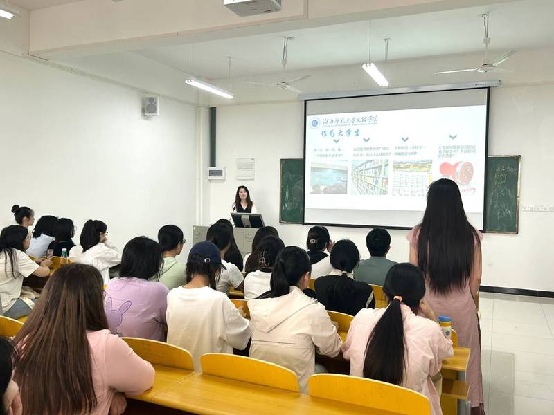 班会开始前辅导员黄安琪老师以提问的方式为切入点,引发同学们对自己目前学习状态的反思。然后从树立良好学风的必要性与问题分析展开,层层深入,中间还穿插讲述了考研寝室及学部优秀学子的成功经历。在互动交流中,指出了同学们身上的共性问题,邀请了成功考取“211”院校的大四学姐来做经验分享,回答同学们的疑惑并给出建议,带领同学们共同宣读“学风建设倡议书”。最后,此次主题班会在轻快的《上春山》旋律里落下帷幕。