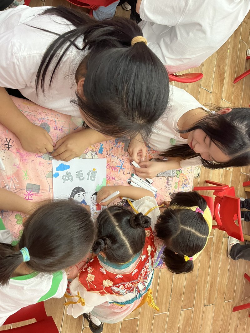 本次活动向幼儿园大班的小朋友们宣讲王二小、海娃、雨来、小萝卜头四位抗日小英雄的故事,宣讲团成员通过讲故事、共创手抄报、讲述六·一国际儿童节的由来,让孩子们懂得今天的幸福生活来之不易。