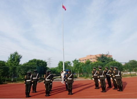 在全体师生的庄严注目下,英姿飒爽的国旗护卫队队员们护送鲜艳的五星红旗进场,伴随着庄严的国歌旋律,五星红旗冉冉升起,迎风飘扬。