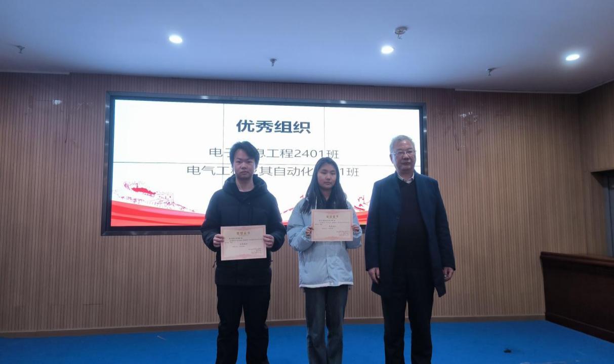 随后,学风建设系列活动表彰环节正式开始。现场气氛热烈,奖项依次揭晓。朱明亮老师率先上台,为“三字初赛得奖者”颁奖,肯定他们在书写技能上的深厚功底。接李晶老师颁发“帮扶先锋标兵”荣誉,赞扬同学们乐于助人的精神。董学良老师为“程序设计大赛一等奖”获得者颁奖,见证他们在代码世界的卓越表现。方婷老师则将荣誉给予“算法设计赛获奖者”,表彰其逻辑思维与创新能力。蒋万林老师、周磊老师先后为“学生手册知识竞赛优秀个人奖”得主颁奖,激励同学们对校园规范的深入理解。郭烨老师为“文明寝室”代表颁奖,赞许他们营造的良好生活环境。肖书记上台,为“学风先进班级”授予荣誉,彰显这些班级浓厚的学习氛围。潘主任为“学风进步突出班级”颁奖,鼓励大家持续奋进。最后,程主任为荣获“优秀组织奖”的班级颁奖,感谢他们为活动顺利开展的辛勤付出。