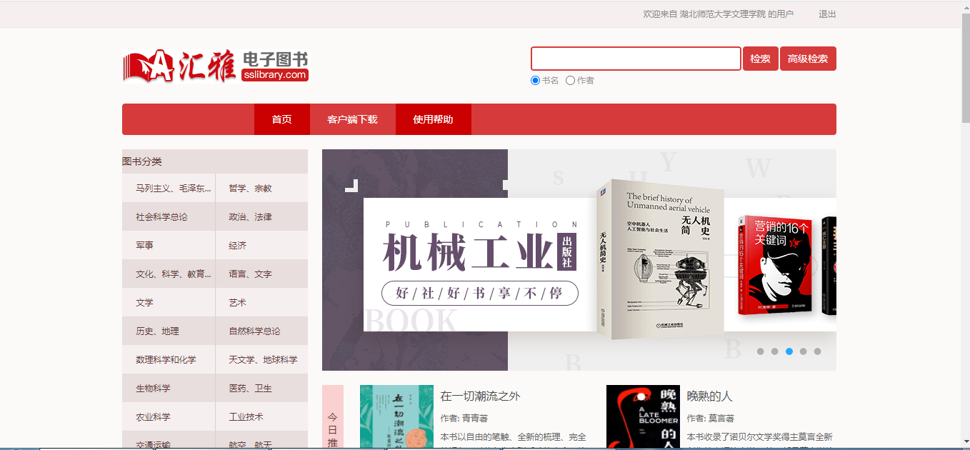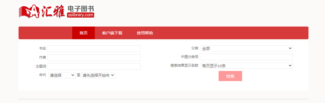 在搜索框直接输入检索词,检索词可定位到书名,作者,目录或全文中,然后点击搜索,将为您在海量的图书数据资源中进行查找。