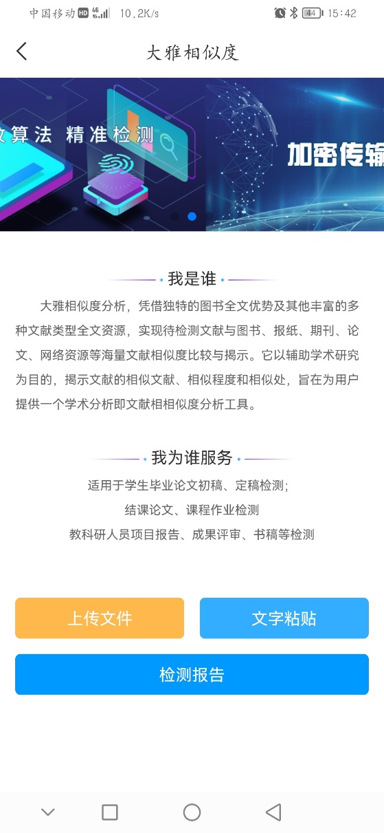 大雅相似度适用于学生毕业论文初稿、定稿检查,结课论文、课程作业检测;教科研人员项目报告、成果评审、书稿等检测。查重准确率较高,需收费。