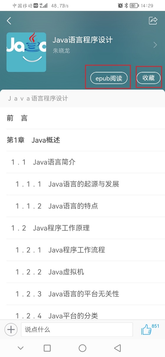 部分图书可以选择epub阅读,通过下载加入书架离线阅读。为了方便下次使用,也可以将图书收藏到云盘。