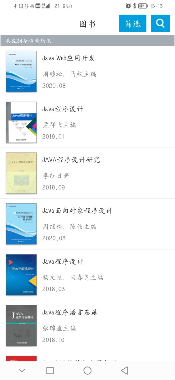 与图书馆OPAC系统对接,在搜索框输入想要检索的图书关键词/书名/作者/ISBN,点击搜索,即可搜索到馆藏资源,任意点击一个查询结果,显示图书的详细信息及馆藏地点。