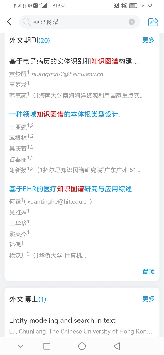 在首页搜索框输入自己想要的资料关键词,找到所有相关的资料,包括词条、学术趋势、期刊文章、图书目录、电子书、学位论文、会议论文、报纸等等。