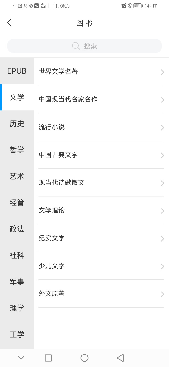 包括文学名著、科幻文学、历史军事等9个类别,也可以通过输入关键词检索。