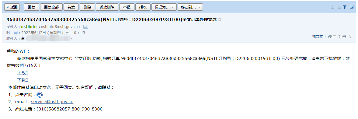 3.查询到所需文献后,单击题名可进入文献详情。如需下载全文,选择“原文传递”,输入邮箱地址,一个工作日内会发送到邮箱。