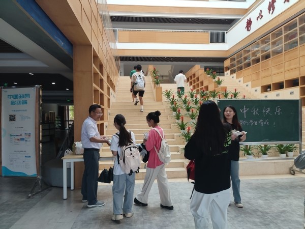 9月17日,是今年的中秋节。为营造传统文化韵味与现代阅读乐趣的节日氛围,我校图书馆开展进馆读者赠送月饼活动。