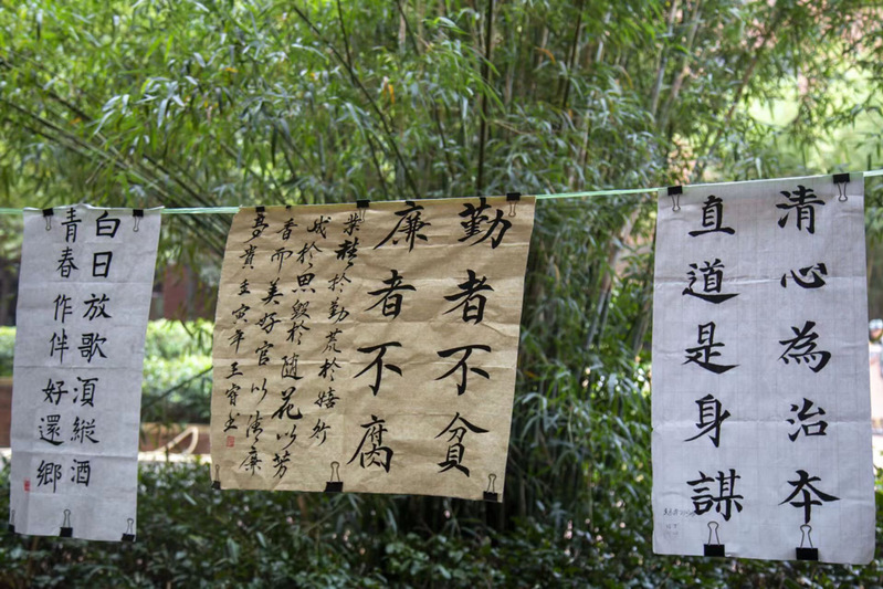 参展同学热情高涨,尽情发挥自己的艺术特长,以硬笔、软笔等表现形式向我校师生展示出“清风廉洁进校园”的美好愿景。领导老师亲临书画现场,对一幅幅笔走龙蛇、结体道劲的作品进行细细点评并将特色作品挂上文化墙,让路过的师生纷纷驻足欣赏。