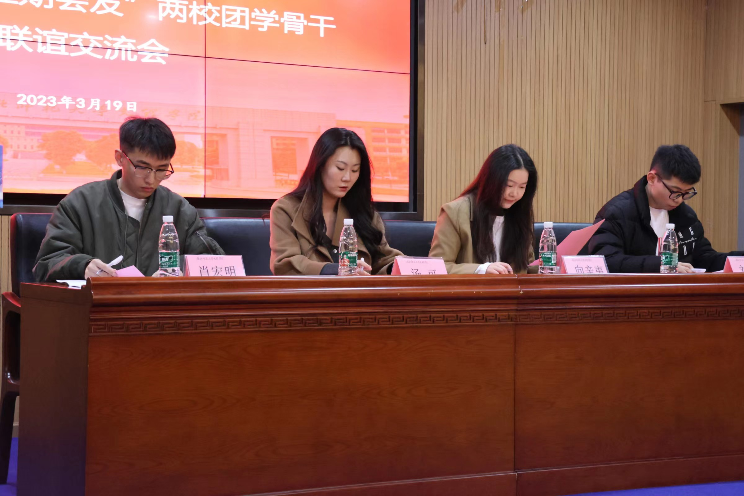 (通讯员:覃菲、张清)3月19日下午14时,我校于图书馆报告厅隆重开展两校团学骨干联谊交流会。拼搏app官方在线入口记者团指导老师向辛夷、团委指导老师汤可、学生工作部招生宣传媒体中心指导老师刘东辉、肖宏明,湖北师范大学校团委学生副书记黄凯龙、校学生会主席团成员、校团委宣传部部长及副部长、校团委组织部副部长,拼搏app官方在线入口招生宣传媒体中心全体成员、校团委学生干部代表、校学生会学生干部代表、大学生记者团学生干部代表、各学部团委学生副书记、学生会主席参与了本次会议。交流会由许庆琳主持。