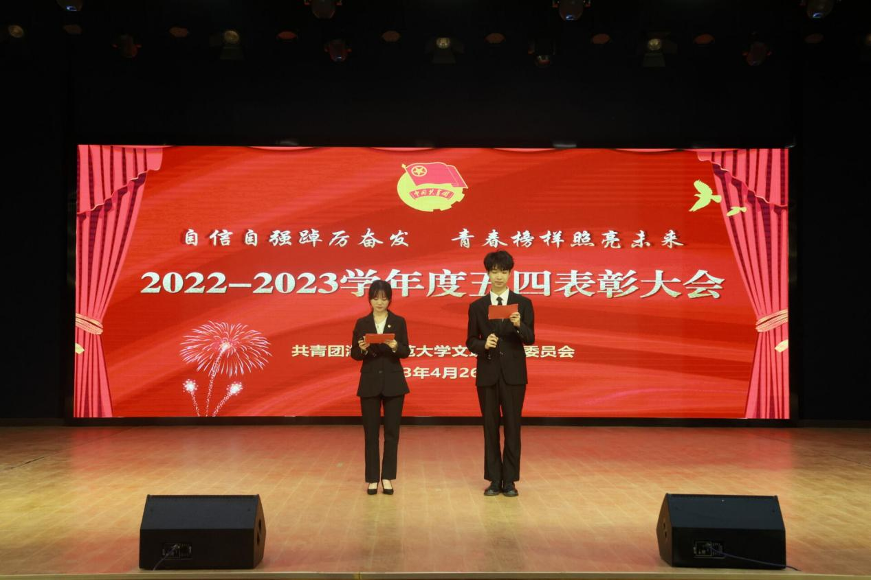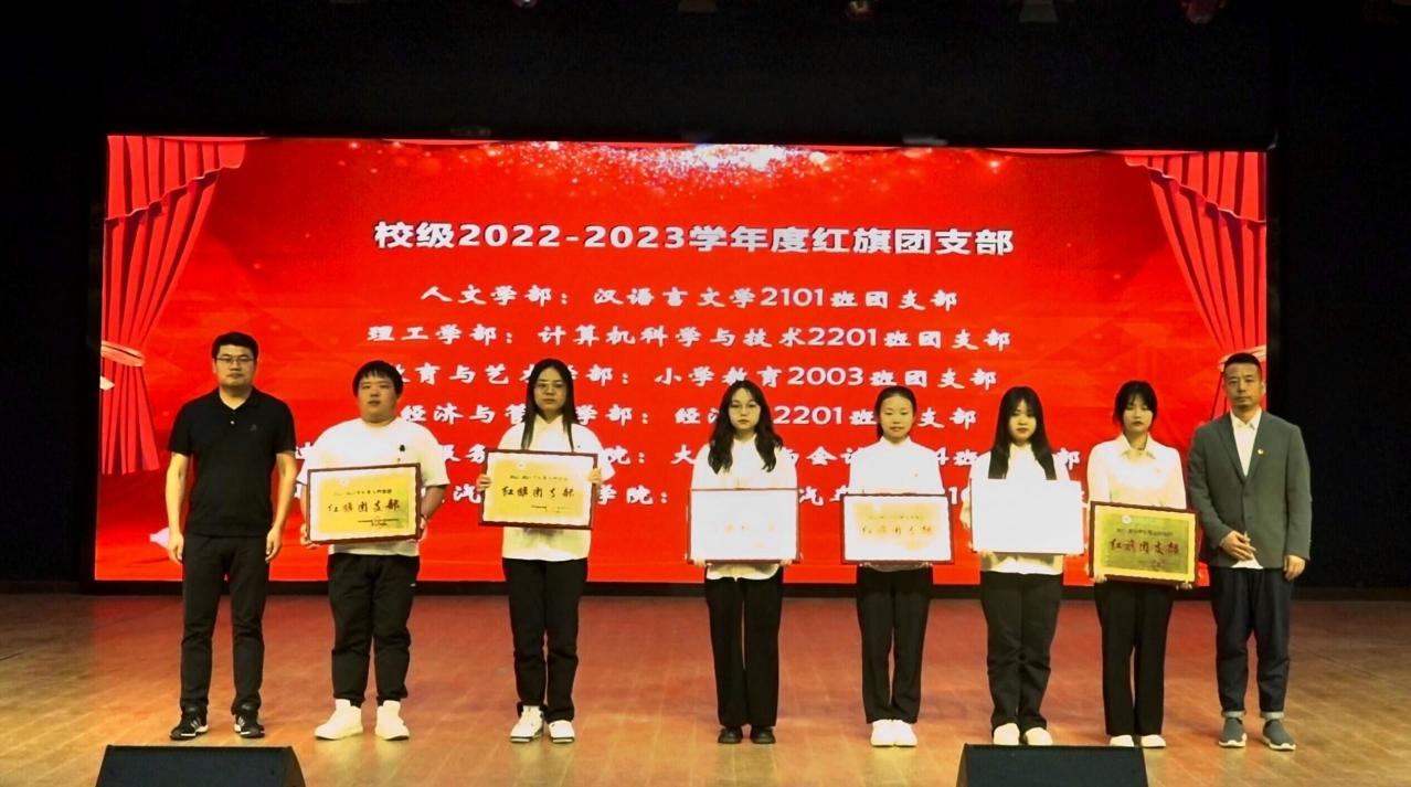 (通讯员:李鑫悦)为弘扬五四运动崇高爱国理想和革命精神,加强青年师生党团史学习教育,4月26日晚上18时30分,我校在学术交流中心隆重举行以“自信自强踔厉奋发,青春榜样照亮未来”为主题的五四表彰大会。拼搏app官方在线入口党委书记杨邓红、党委宣传部部长陶晚成、学工部副部长肖劲光、学工部副部长陈小龙、团委书记兼学工部副部长陈荟芸、教育与艺术学部党总支书记李先华、理工学部党总支书记肖圣芳、东风悦享智能汽车产业学院党总支书记费凡、腾讯云大数据产业学院学部主任魏智慧、各学部团学指导老师以及各学部学生代表参与了本次大会。大会由团委主持团成员董琰和陈慧洁主持。