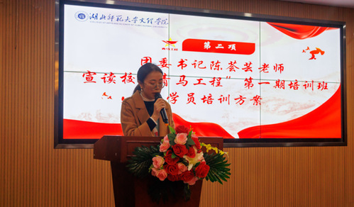 此外,团委书记陈荟芸老师对“青马工程”的介绍以及校领导的致辞,从不同角度阐明了“青马工程”的意义。陈荟芸老师宣读的“青马工程”第一期培训班培训方案,从理论培训的“六个专题”,实践锻炼的“五大板块”以及素质提升的“两大类别”阐明“青马工程'主旨,让学员们进一步了解”青马工程”的相关要求,明晰今后前进的目标与方向。党委副书记杨之毛老师的致辞借用新时代共青团员要做的“五个模范”,希望学员们不负期待,学有所成。激励我校青马学员不骛于嘘声,不笃于空行,为学校、为社会、为国家的发展贡献青春力量。