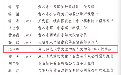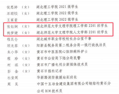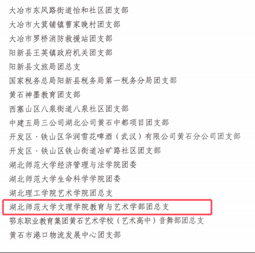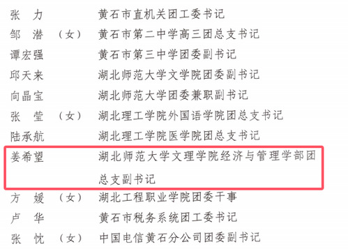 (通讯员:谢頔)在共青团黄石市委、黄石市青年联合会关于“两红两优”及“青年五四奖章”评选表彰工作中,我校师生以卓越的表现脱颖而出,斩获多项荣誉!