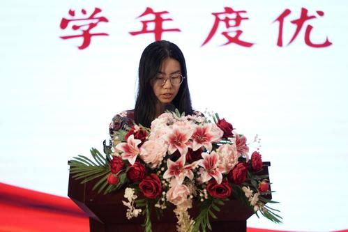 校团委指导老师周卿云宣读2024—2025学年度优秀干部、干事表彰人员名单。授予张昊轩等137名同学“优秀干事”荣誉称号;授予张钰娴等37名同学“优秀干部”荣誉称号。