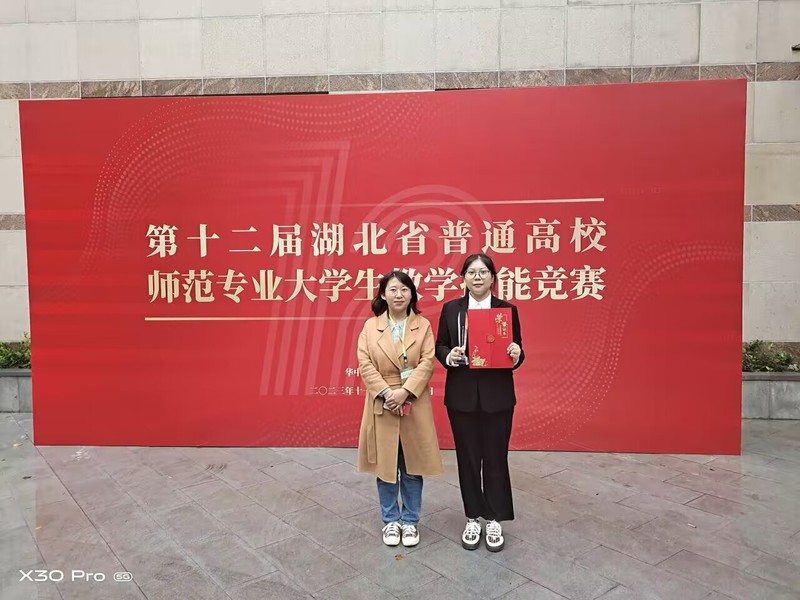 2023年11月11日,第十二届湖北省普通高校大学生师范专业教学技能大赛决赛在华中师范大学举行,我校人文学部汉语言2006班学生皮婉昕获得高中语文组二等奖。本次竞赛由华中师范大学承办,分为语文组、数学组、英语组、物理组、化学组、生物组、政治组、历史组、地理组等9个主要学科竞赛组,分设高中组和初中组共18个组别,全省16个高校共215名选手参赛,经大赛初赛评审和角逐,最终有65名选手入围决赛。在决赛中,通过现场抽题,经教学设计、课件制作、即兴讲演和模拟授课等环节,皮婉昕表现出色,获得高中语文组二等奖的佳绩,展现了扎实的教学技能和良好的精神风貌。