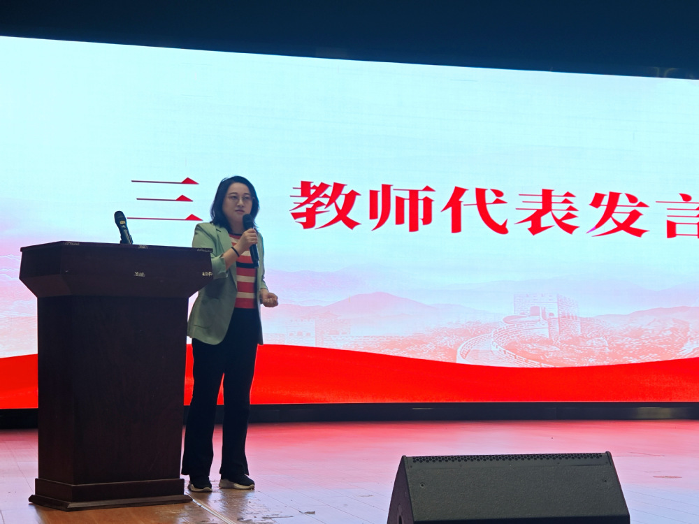 学工办负责人张一能老师为学生详细解读了学生管理规定。他强调“规则是自由的边界,更是安全的保障”。英语教研室主任邓薇薇老师作为教师代表,围绕“如何在人工智能的时代下发展我们的英语优势?”话题展开,为同学们明晰前进方向。