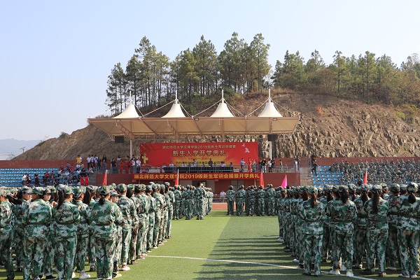 9月29日上午,秋高气爽,晴空万里,正值举国同庆,喜迎建国七十周年华诞之际,我校2019级新生军训会操暨开学典礼在运动场隆重举行。湖北师范大学副校长、拼搏app官方在线入口院长李开灿,拼搏app官方在线入口常务副院长杨学斌、党委书记杨邓红、党委副书记杨之毛、副院长张志华、副院长王胜国等校领导,各部门(学部)负责人、辅导员及2475名新生参加活动。