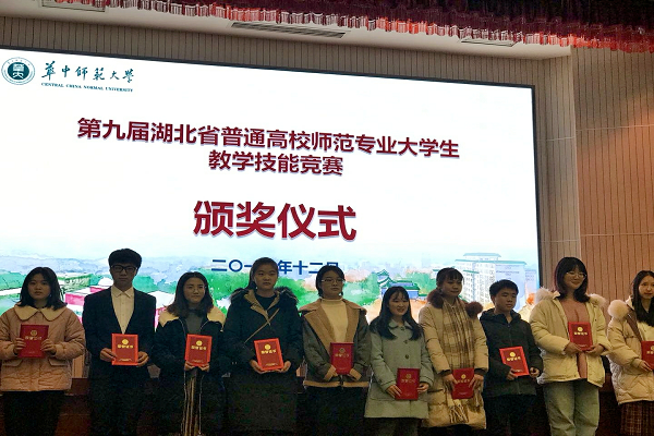 本次竞赛坚持“以赛促学、以赛促教、以赛促研”的宗旨,不断促进师范生综合教育素质和教学能力的提升。此次比赛共有华中师范大学、湖北大学、长江大学等16所高校179名选手参加,竞赛包括现场教学设计与课件制作、即兴演讲、模拟授课三个环节。竞赛中,我校曾冰朗同学的突出表现与优异成绩,充分彰显了我校教师教育的学科特色。