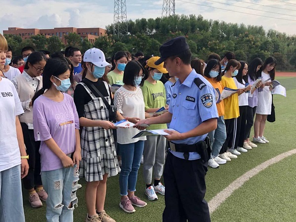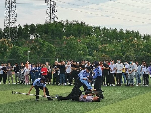 “上课期间,外人禁止入内……校门有人冲卡,请求紧急支援。”9月30日下午,由我校和开发区·铁山区汪仁派出所联合开展的“2020国庆·中秋安保实战演练”活动在我校运动场举行,来自各学部的300余名师生和保安人员参加了演练。