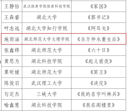 近日,湖北省第十九届“福创杯”新青年小说大赛获奖名单出炉。经过评委层层筛选,我校高扬和施雨涵两位同学荣获大赛二等奖,熊子延教授获得优秀指导老师奖。