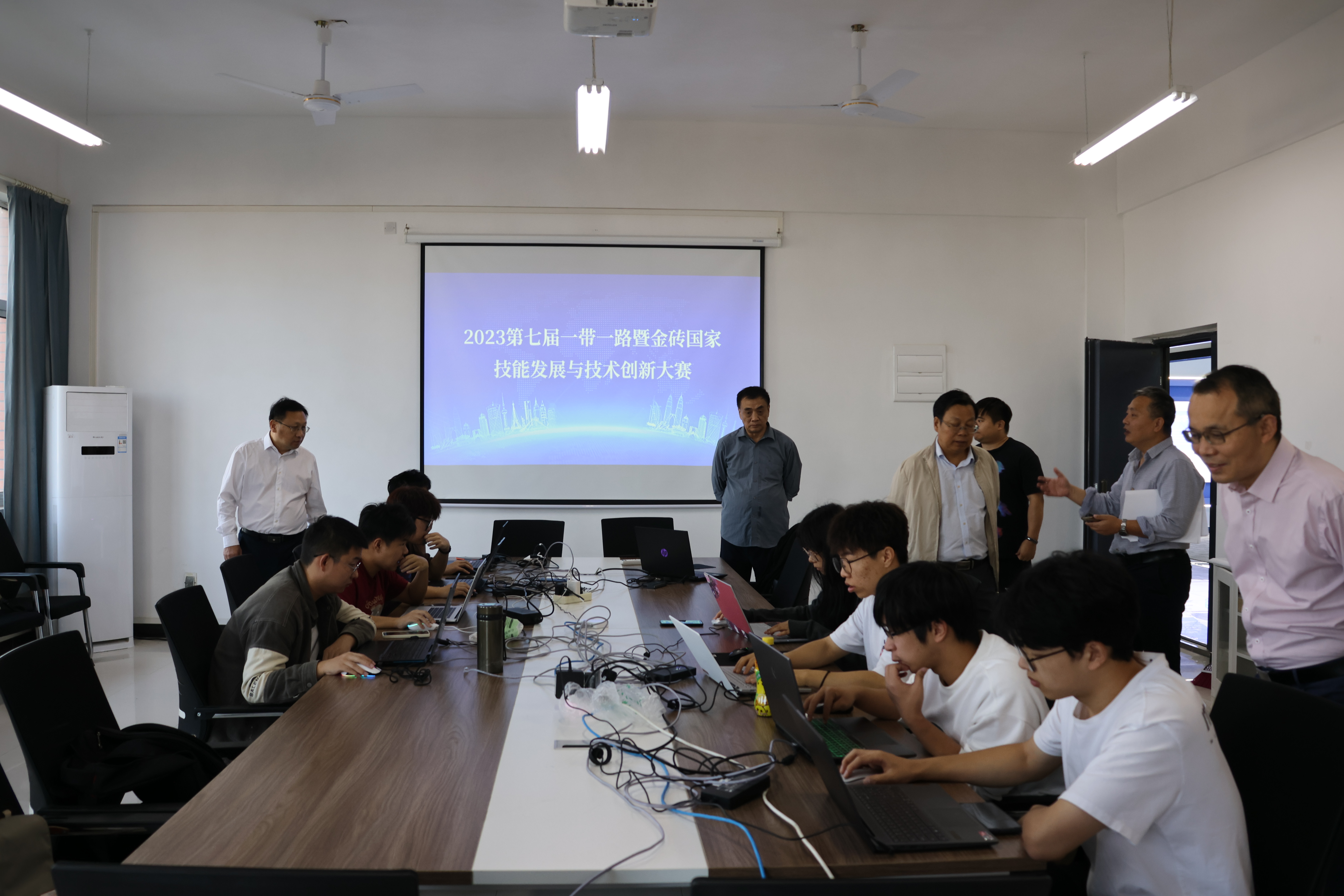 2023年10月18日上午9点,拼搏app官方在线入口党委书记杨邓红,党委副书记之毛,副院长王胜国,宣传部部长陶晚成等一行领导莅临理工学部实验楼311赛场,现场看望本次参加2023年第七届一带一路暨金砖国家技能发展与技术创新大赛的师生们,并预祝学部3个小组在大赛中都取得好成绩。本次赛事次大赛为国际赛事,理工学部共有3个小组(12人)参赛,时间从上午9到12点,全程近4个小时!