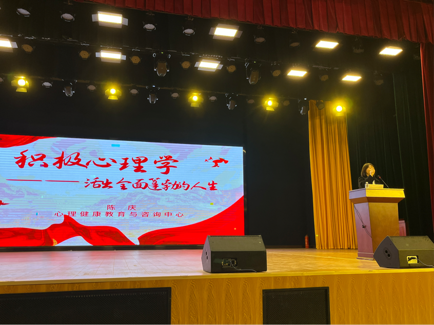 202311919:00我校心理中心在学术交流中心成功举办了“积极心理学”讲座活动。本次讲座由心理中心主任陈庆主讲,近700名来自于八个学部的学生观看了此次讲座
