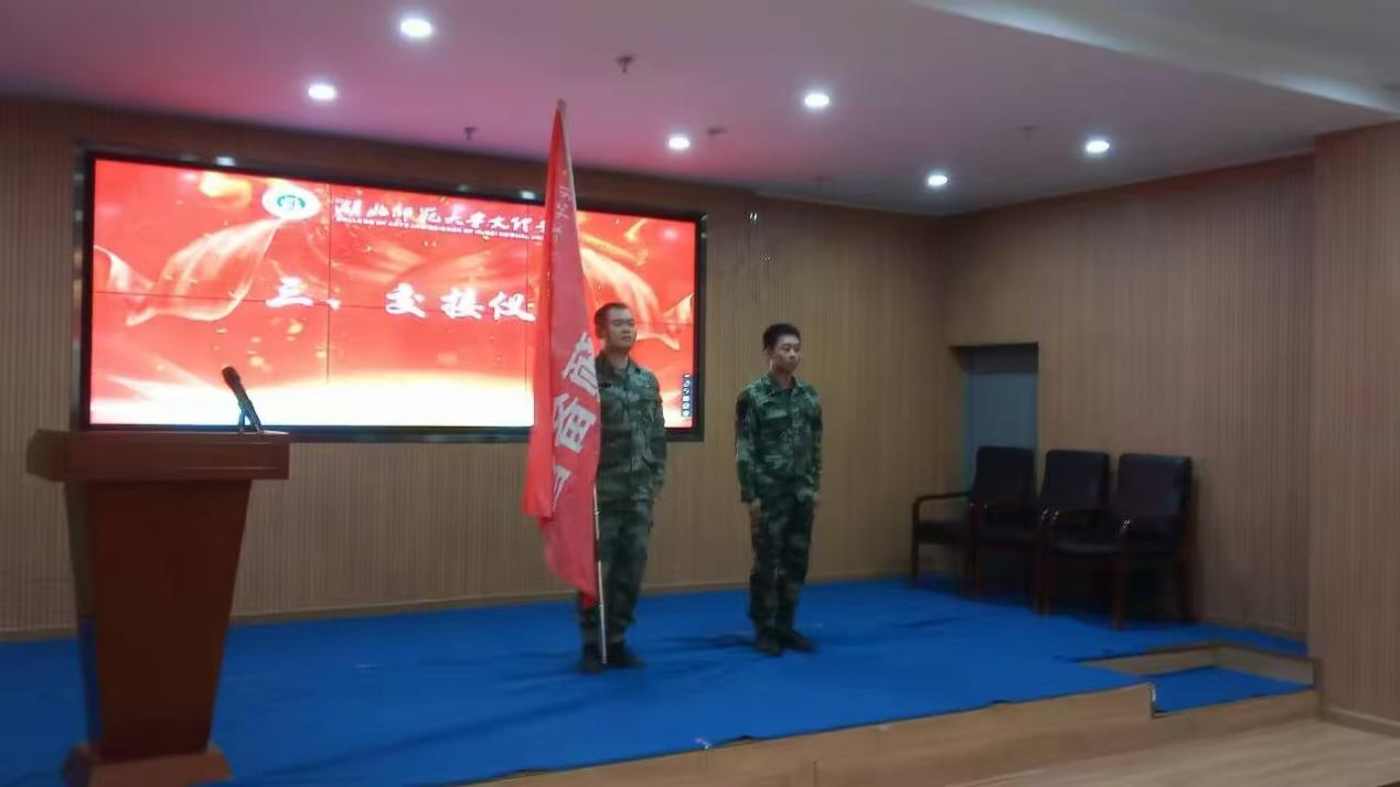 会上,两任营长依次发言并进行交接。国防预备营各部门长带领干事先后上台进行自我介绍,增进成员之间的了解。学工部副部长陈小龙向大家讲述了国防预备营成立的时代背景、介绍了国防预备营的各连队组成;同时借此机会向预备营所有学生提出“传承精神,服务学生、认真工作,服务学校、尽心尽力,服务国防”希望与要求。