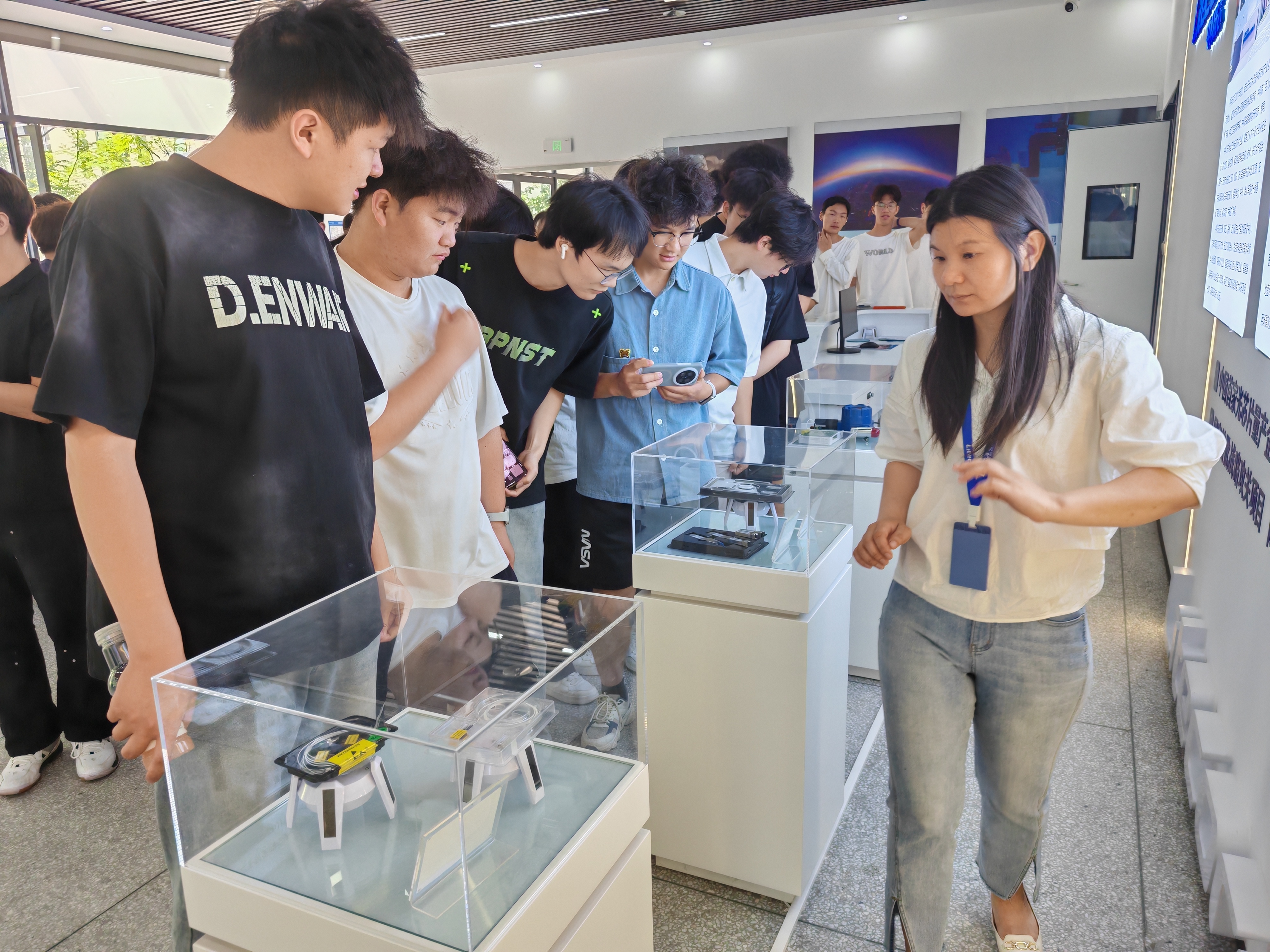 从自主研发的高性能外延片,到高精度光芯片,再到光发射组件等,每一款产品都凝聚着科研团队的智慧与心血。这些产品不仅在光纤通信、数据中心等领域广泛应用,还具备低功耗、高传输速率等技术优势,处于行业领先水平。同学们认真聆听,不时就产品原理、应用场景等问题进行提问,现场互动热烈。