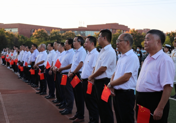 本网讯(通讯员 段欣如)10月3日,我校在田径运动场举行“为国庆华诞,喜迎二十大”升旗仪式活动。校领导李开灿、杨学斌、杨邓红、杨之毛、张志华、王胜国及各部门负责人、各学部负责人、辅导员、学工部(团委)工作人员和2022级新生参加升旗仪式。
