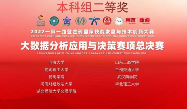 本网讯(通讯员 渣梦丽)2022年10月22日至23日,“2022一带一路暨金砖国家技能发展与技术创新大赛之大数据分析与应用赛项总决赛”在线上云端举行,此次比赛历时两天,经过理论答题、案例分析与工具操作、PPT汇报与答辩等环节,我校经济与管理学部学子荣获全国二等奖。