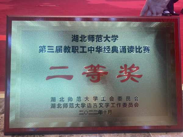 本网讯(通讯员 柯康敏)10月27日下午,湖北师范大学第三届教职工中华经典诵读在教育大楼学术报告厅举行,我校人文学部丁书嫚老师朗诵的作品《读中国》荣获二等奖。