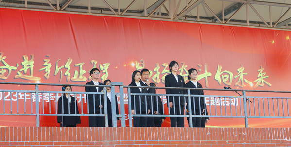 本网讯(通讯员 刘健美王炜婷 摄影 高雨欣 张欧静 何莫妍 朱羽杰)2月27日清晨,我校在田径运动场举行2023年春季开学升旗仪式暨“开学第一课”主题活动。全体校领导、各职能部门负责人、各学部负责人(主任、书记、副书记)、辅导员、学工部(团委)工作人员、团学指导教师、学生党员代表(含入党积极分子)、校级和学部团学干部代表、学生代表参加了本次活动。