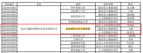 本次获批立项的项目主要分布在信息通讯与互联网行业、教育行业、交通运输与邮政快递行业。本次立项的项目系我校与用人单位北京天融信网络安全技术有限公司、武汉优能高教科技有限公司、湖北京邦达供应链科技有限公司共同组织申报,旨在推动人才培养与就业有机联动、人才供需有效对接。