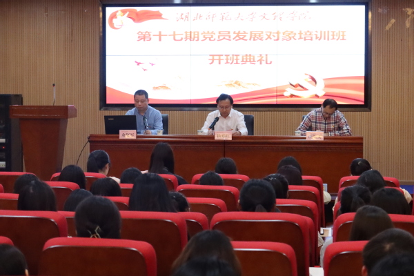 本网讯(通讯员 余复军)5月8日晚,我校在图书馆报告厅举办第17期党员发展对象培训班开班典礼。党委书记杨邓红,党委组织部、学生工作部负责人,以及第17期发展对象培训班全体学员参加了开班典礼。