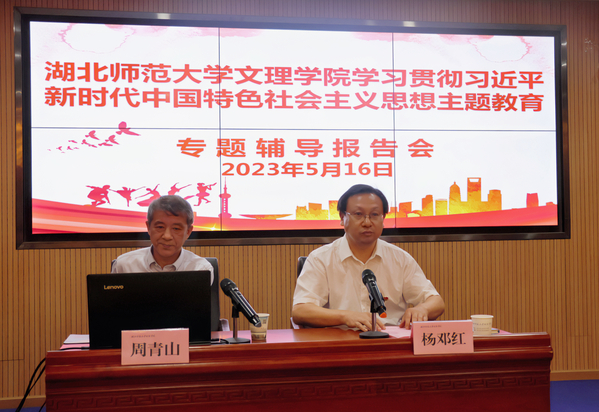 本网讯(通讯员 高雨欣)5月16日我校召开学习贯彻习近平新时代中国特色社会主义思想主题教育专题辅导报告会,本次活动邀请黄石市理论宣讲员、马克思主义学部主任周青山教授作专题报告。全体校领导、主题教育读书班学员、中层副职以上干部、各党支部书记、第17期党员发展对象培训班全体学员参加了报告会。会议由党委书记杨邓红主持。