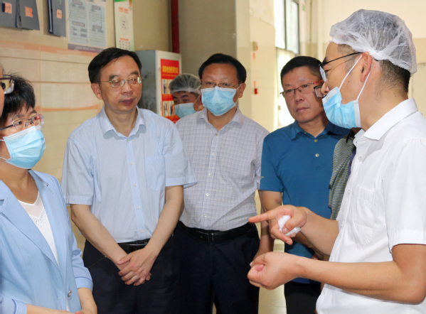 本网讯(通讯员涂亦乐)为进一步增强食品安全意识,筑牢食品安全防线,全面推进食品安全“两个责任”工作落实见效。5月30日上午,市委常委、市委宣传部部长周庆荣率市市场监管局、开发区·铁山区相关部门一行深入我校食堂开展食品安全检查工作。院长李开灿、常务副院长杨学斌、党委书记杨邓红、副院长张志华及相关部门负责人陪同检查。