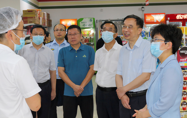 本网讯(通讯员涂亦乐)为进一步增强食品安全意识,筑牢食品安全防线,全面推进食品安全“两个责任”工作落实见效。5月30日上午,市委常委、市委宣传部部长周庆荣率市市场监管局、开发区·铁山区相关部门一行深入我校食堂开展食品安全检查工作。院长李开灿、常务副院长杨学斌、党委书记杨邓红、副院长张志华及相关部门负责人陪同检查。