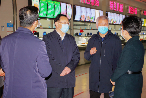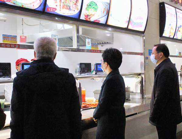 周庆荣对我校食堂安全表示肯定,并指出,学校要深入贯彻习近平总书记关于食品安全的重要指示批示精神,落实全国食安办视频会议精神,推动建立健全分层分级、精准防控、末端发力、终端见效长效机制,进一步压紧压实食品安全属地管理责任和企业主体责任。