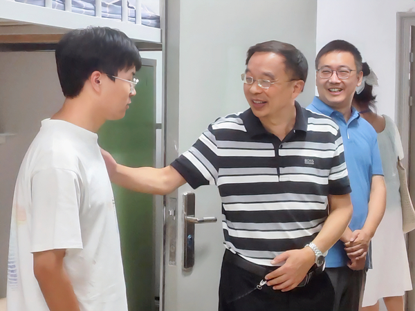 在新生宿舍,校领导们与新生进行了亲切交谈,询问他们对学校环境的适应情况,倾听并解答学生们提出的问题,叮嘱同学们注意人身财物安全,谨防电信诈骗,勉励新生不负韶华,不负期待,尽快融入大学生活。