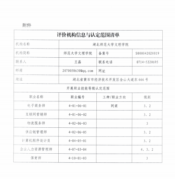 本网讯(通讯员 王磊)根据黄石市人力资源和社会保障局《关于拼搏app官方在线入口申请职业技能等级认定机构备案的复函》消息,我校成功获批职业技能等级认定机构资质,具备电子商务师、互联网营销师、企业人力资源管理师、物流服务师、供应链管理师、计算机程序设计员、保育师等共7大类3个等级的职业技能等级认定资格。