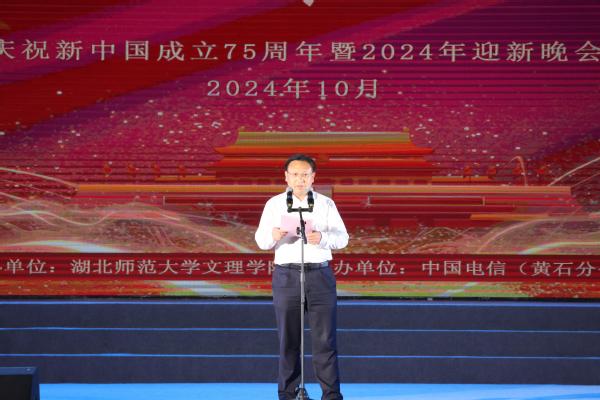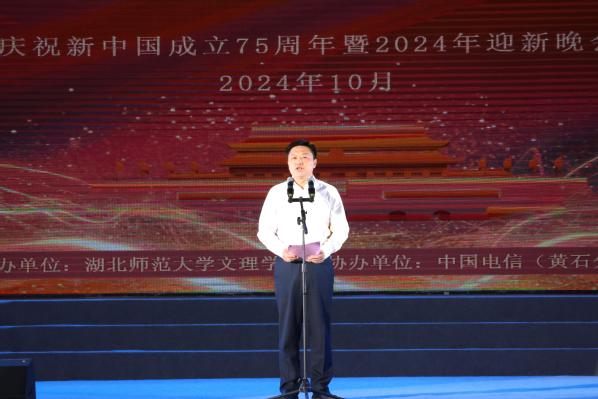 本网讯(图 大学生记者图 文 翁典典 杨慧茹)忆往昔峥嵘岁月,看今朝绝代风华。10月11日晚,以“青春高歌颂华诞,挺膺担当谱华章”为主题的庆祝新中国成立75周年暨2024年迎新晚会在校田径场举行,晚会由中国电信股份有限公司黄石分公司承办。全体校领导,承办方相关领导,校内各职能部门、各学部(学院)负责人,师生代表、全体新生辅导员及2024级全体新生共享视觉盛宴。