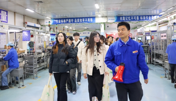 东贝集团压缩机公司招聘主管徐文进带领师生一同进入东贝集团厂区参观,深入了解东贝集团的发展历程、核心技术以及在行业内所取得的卓越成就,一同感受黄石强大的制造业底蕴。同学们纷纷表示在这里切实感受到了工业的力量,也明白了科技创新对于企业发展的重要性,这一趟来得太值了。