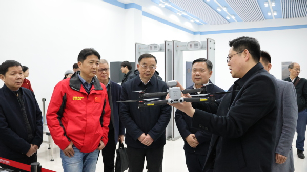 在优能东风悦享新能源汽车产业学院实训基地,讲解员介绍了构建无人驾驶汽车模拟室的教学应用,展示其广阔的前景;在理工学部科学演示实训基地,专家饶有兴趣地玩起了极光音乐,近距离感受龙卷风的形成,观看光的压力实验......丰富的实验仪器,充分展示了科技的魅力;在翔宇航空产业学院实训室,解说员介绍了无人机的历史、现状和未来的发展方向,实地展示了无人机的操作,调研组还参观了航空服务训练室、航空训练舱等实训场景。
