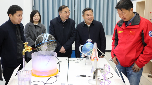 沈权一行对我校科普实训基地硬件建设给予了高度的评价,对基地服务社会表示肯定,希望学校充分发挥科普基地功能,助力青少年科普实践教育。