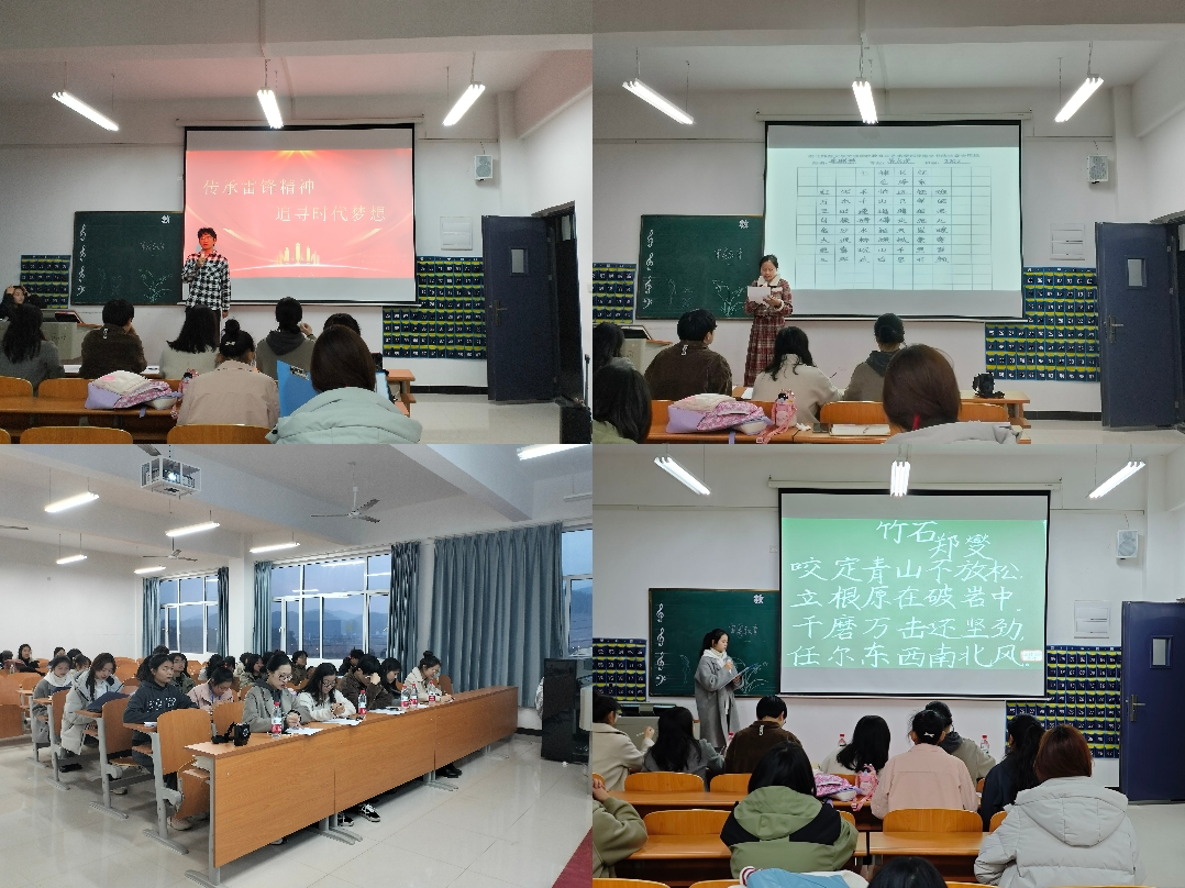 为进一步弘扬雷锋精神,全面推进素质教育,提升大学生综合素质与人文素养,突出我校师范类育人特色,展现当代大学生风采。2024年3月12日学部在实验楼1-403开展以“传承雷锋精神,追寻时代梦想”为主题的“三字一话”初赛,旨在选拔优秀选手,参加院团委举办的三字一话决赛。