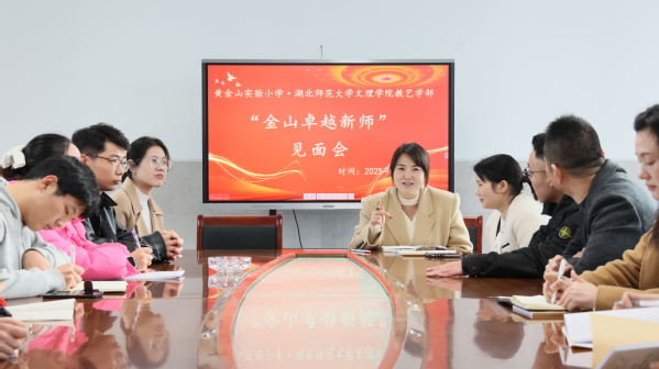 实习首日,教育与艺术学部党总支副书记陈小龙带领学部相关负责人与首批五名师范生抵达黄金山实验小学进行试课活动。在欢迎仪式上,黄金山实验小学校长王娜介绍了学校的基本情况、办学理念和师资队伍建设情况,希望实习生珍惜实习机会,积极参与教学实践,在教学中培养小学生品德,传授好知识,创新教学手段,提升自己的教学水平与能力。陈小龙鼓励实习生们虚心学习,将理论知识与实践相结合,在实习中积累经验,为今后成为一名优秀的人民教师打下坚实基础。